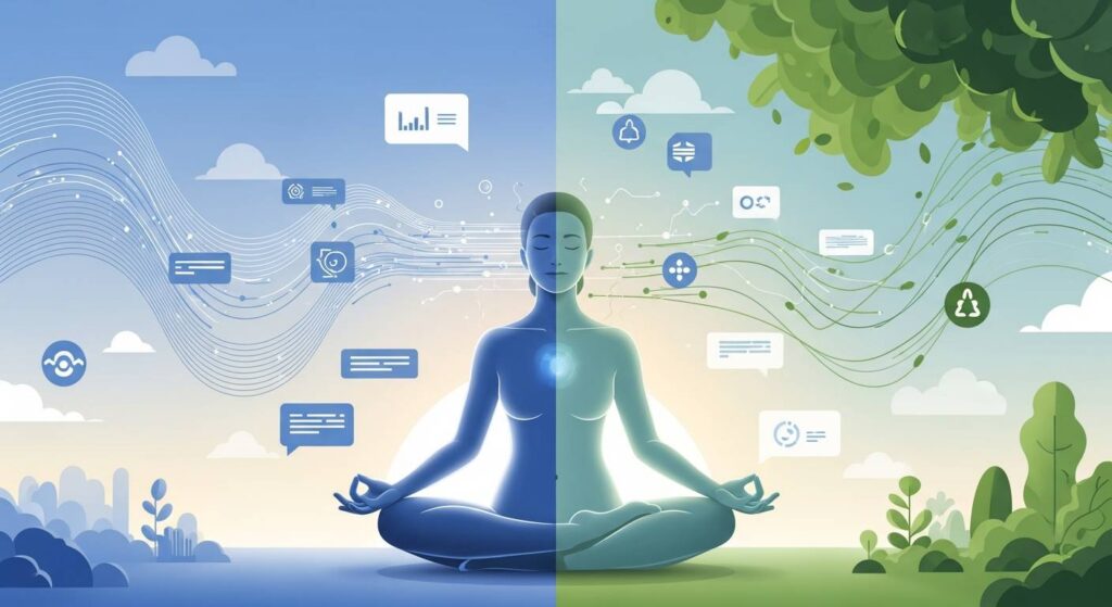 デジタルデトックスは単なるスマホ断ちではなく、自分の内面と向き合う貴重な機会です。SNSのない時間は、自分の本当の感情や思考に気づくきっかけとなります。この「気づき」こそがヨガ哲学の核心であり、メンタルケアの第一歩なのです。